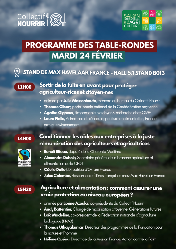 À l’occasion du Salon Inter­na­tion­al de l’A­gri­cul­ture 2026, nous vous don­nons ren­dez-vous le mar­di 24 févri­er pour une journée de table-ron­des organ­isées autour d’une exi­gence claire : sor­tir de la fuite en avant et remet­tre la pro­tec­tion au cœur des poli­tiques agri­coles et alimentaires.
